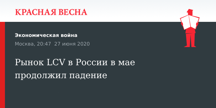 На седьмое место в Европе опустился российский рынок легких коммерческих автомобилей (LCV) в мае 2020 года, несмотря на сокращение темпов падения, 27 июня сообщает Европейская ассоциация автопроизводителей (АСЕА).
