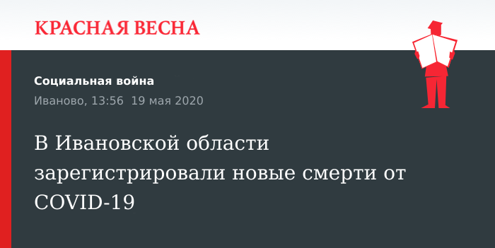 Два человека, заболевшие COVID-19, скончались в Ивановской области за сутки, сообщил 19 мая региональный оперативный штаб по борьбе с коронавирусом.