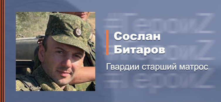 Решительность, отвага и высочайший уровень тактической подготовки гвардии старшего матроса Сослана Битарова и его боевых товарищей, решительной контратакой ошеломивших наступающих украинских нацистов, позволили одержать победу в бою и удержать оборонительные рубежи от превосходящих сил противника в ходе выполнения спецоперации по освобождению Донбасса и денацификации Украины. Об этом 7 января сообщила пресс-служба Минобороны РФ.