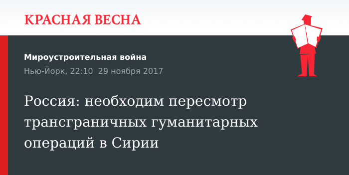 «В нынешнем виде этот механизм сохраняться не может, он ущемляет суверенитет Сирии и противоречит принципам чрезвычайного гуманитарного содействия, согласованным Генассамблеей ООН. Поэтому в свое время он стал беспрецедентной экстренной мерой, которая сегодня требует переоценки», — заявил Небензя.