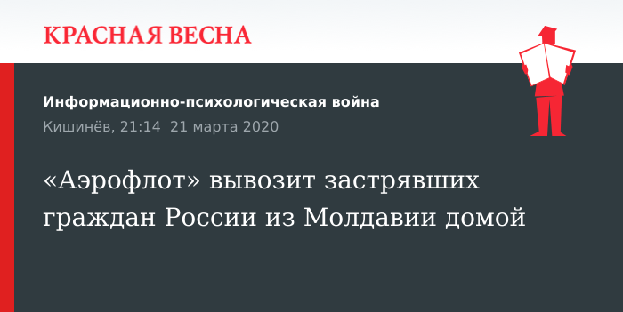 Российских граждан, которые не могли покинуть Молдавию из-за пандемии коронавируса, начали вывозить самолетами «Аэрофлота», заявил пресс-секретарь посольства РФ в Молдавии Анатолий Лошаков 21 марта, сообщает ТАСС.