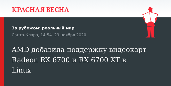 Поддержку драйверов видеокарт Radeon RX 6700 и RX 6700 XT в операционной системе Linux добавила компания AMD, об этом 29 ноября сообщается на сайте ixbt.com.