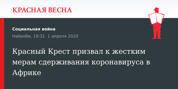 Принять жесткие незамедлительные меры сдерживания коронавируса в Африке призвал Международный комитет Красного Креста, 1 апреля пишет газета The Navhind Times.