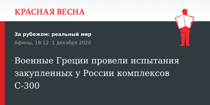 Испытания зенитно-ракетной системы противовоздушной обороны С-300 российского производства провели греческие военные в ходе учений на греческом острове Крит, 1 декабря сообщает информационное издание Al-Masdar News со ссылкой на турецкие СМИ.