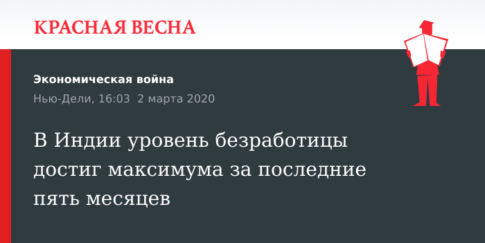 В Индии уровень безработицы достиг максимума за последние пять месяцев