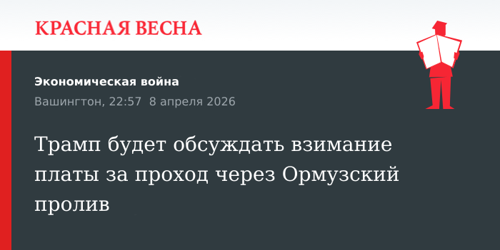 Дональд Трамп высказывал идею, что это США должны взимать плату за проход судов через Ормузский пролив, а не Иран. По словам Левитт, эта идея будет обсуждаться в течение ближайших двух недель.
