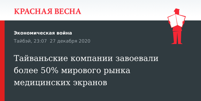 Совокупная доля двух тайваньских производителей экранов для медицины превысила половину мирового рынка, 25 декабря сообщает тайваньское издание об информационных технологиях и электронике DigiTimes.