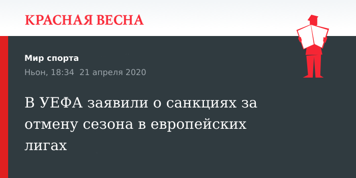 Кроме конкретных рекомендаций, в УЕФА обозначили возможные санкции по отношению к тем лигам, где сезон будет завершен досрочно. В таких случаях в УЕФА будет разработаны особые условия участия команд из этих лиг в еврокубках сезона 2020/2021.