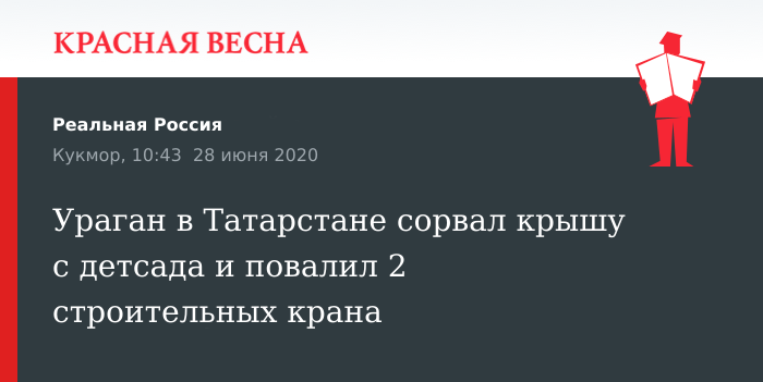 Ураган в Татарстане сорвал крышу с детсада и повалил 2 строительных крана