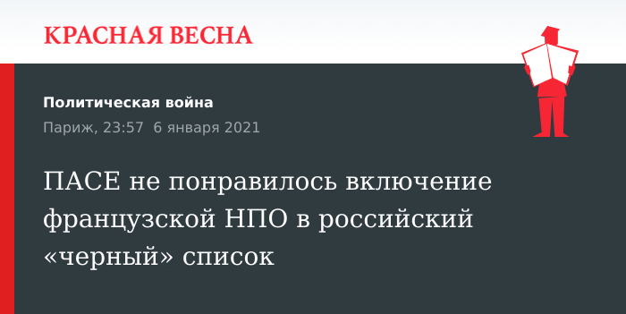 Напомним, 23 декабря Генеральной прокуратурой РФ деятельность французской неправительственной организации «Ассоциация школ политических исследований при Совете Европы» (НКО, выполняющее функции иностранного агента) признана нежелательной на территории России.