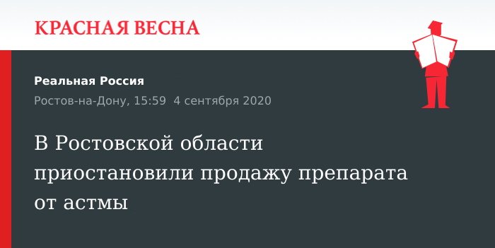 Реализацию препарата для лечения астмы приостановил Росздравнадзор по Ростовской области, сообщает 4 сентября пресс-служба ведомства.
