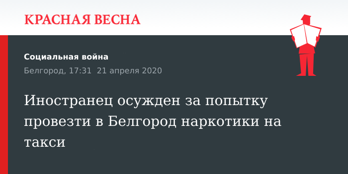Иностранец осужден за попытку провезти в Белгород наркотики на такси