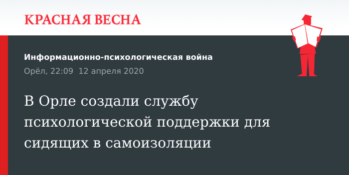 Служба анонимной психологической поддержки для тех, кто испытывает дискомфорт во время нахождения в вынужденной самоизоляции, запущена в Орловском психоневрологическом диспансере, 12 апреля сообщается на сайте учреждения.