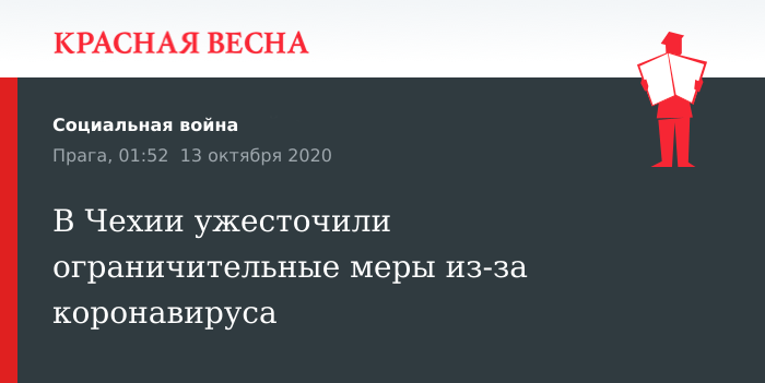 Напомним, с 1 сентября в Чехии ускорились темпы распространения коронавирусной инфекции. 11 октября в Чехии официально зафиксировали 3104 случая заражения коронавирусом, за сутки в республике скончались 50 человек с COVID-19.