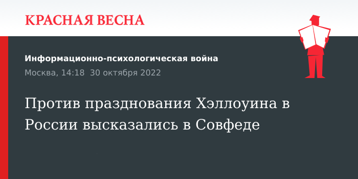 Напомним, ранее, 26 октября 2022 года, в Совфеде Хэллоуин назвали частью чужеродной, современной антидуховной культуры.