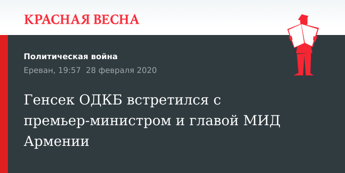 Встречами с министром иностранных дел Зограбом Мнацаканяном и премьер-министром Армении Николом Пашиняном завершил свой визит в Ереван генеральный секретарь Организации Договора о коллективной безопасности (ОДКБ) Станислав Зась 28 февраля.