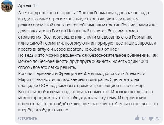 Неожиданное решение проверить фигурантов дела об отравлении на полиграфе предложили в ответ на новость о будущих санкциях для России от ЕС, пользователи Сети, 7 октября комментарии пользователей были опубликованы на новостном агрегаторе «Яндекс.Новости».