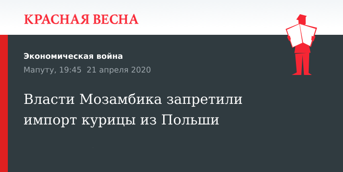 «Ввоз кур и их производных из Польши временно запрещен. Министерство сельского хозяйства предупреждает, что запрет не распространяется на продукты, которые уже транспортируются в Мозамбик», — заявило Министерство сельского хозяйства Мозамбика.