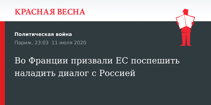 Во Франции призвали ЕС поспешить наладить диалог с Россией