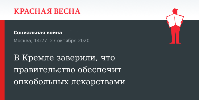В Кремле заверили, что правительство обеспечит онкобольных лекарствами