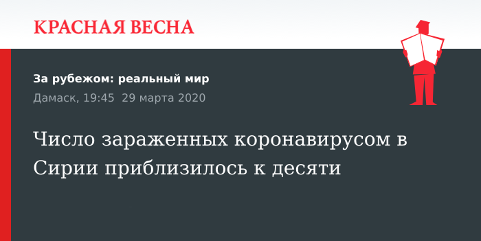 Напомним, 29 марта в Сирии зафиксировали первый случай смерти от коронавируса. Зараженная женщина умерла в скорой по пути в больницу.