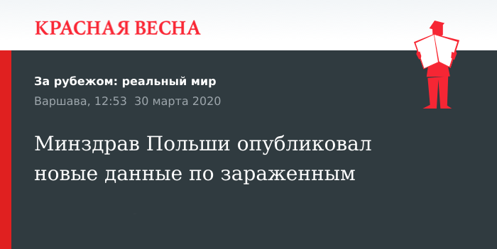 Новые данные о заболевших и погибших от коронавируса опубликовал Минздрав Польши, 30 марта сообщает издание «ONET Ведомости».