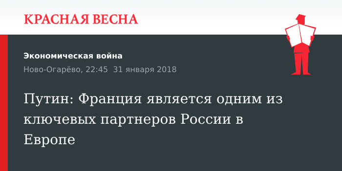 Напомним, что сегодня в резиденции Ново-Огарево Владимир Путин встретился с представителями экономического совета Франко-российской торгово-промышленной палаты. В заключении встречи президент пригласил французских бизнесменов принять участие в Петербургском международном экономическом форуме.