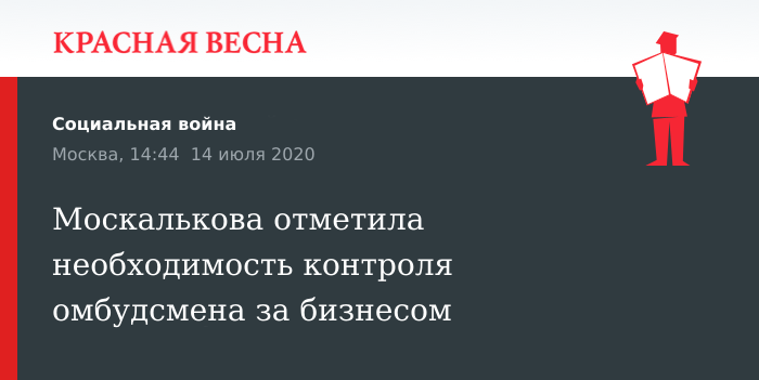 Наделение омбудсменов возможностью реагировать на жалобы граждан о незаконности действий предпринимателей будет способствовать улучшению ситуации с правами человека, заявила главный уполномоченный по правам человека в РФ Татьяна Москалькова 14 июля на заседании комитета Совета Федерации по конституционному законодательству и государственному строительству.
