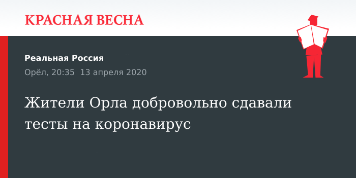 Согласно решению департамента здравоохранения Орловской области, тестирование на коронавирус можно пройти в пяти медицинских учреждениях: в городской больнице имени Боткина, НКМЦ имени Круглой, в Орловском центре СПИД, на Орловской станции переливания крови и в Орловском противотуберкулезном диспансере.