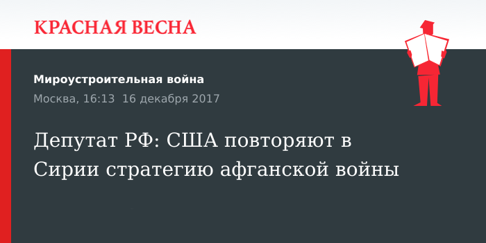 Депутат РФ: США повторяют в Сирии стратегию афганской войны