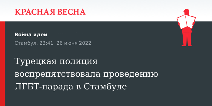 Турецкая полиция не позволила сотням людей собраться на ежегодный парад гордости, или марш ЛГБТ, в Стамбуле 26 июня, сообщает Reuters.