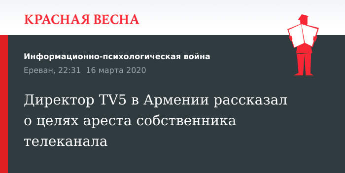 Директор TV5 в Армении рассказал о целях ареста собственника телеканала