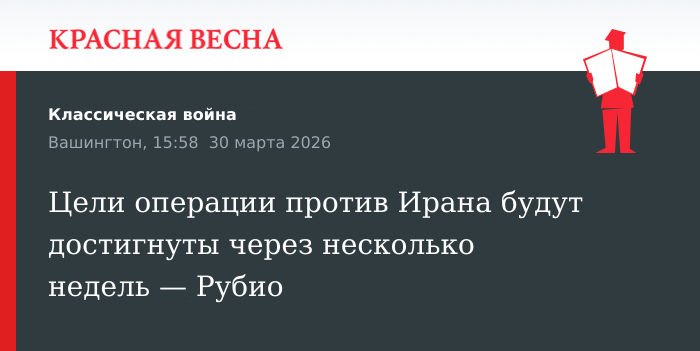 Цели операции против Ирана будут достигнуты в течение нескольких недель, заявил госсекретарь США Марко Рубио 30 марта в эфире телеканала ABC.