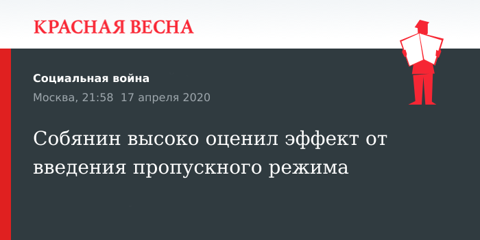 Положительную оценку результатам введения пропускного режима в Москве дал мэр столицы Сергей Собянин в интервью телеканалу «Россия-1» 17 апреля.
