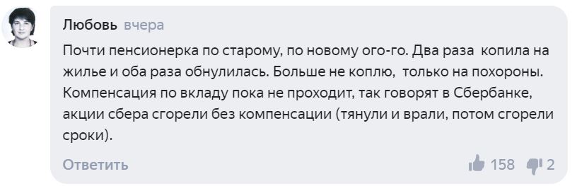 Большая группа пользователей сервиса с недоверием восприняла предложение банкира, указав на то, что долгосрочные вложения уже пропадали со счетов. Комментаторы отмечали, что не готовы доверить большую сумму банку на десятки лет.