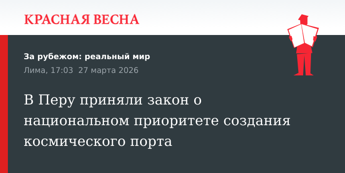 Закон, объявляющий создание первого космопорта в Перу национальным приоритетом страны, принят в конгрессе республики. Об этом 27 марта сообщает перуанское издание RPP.