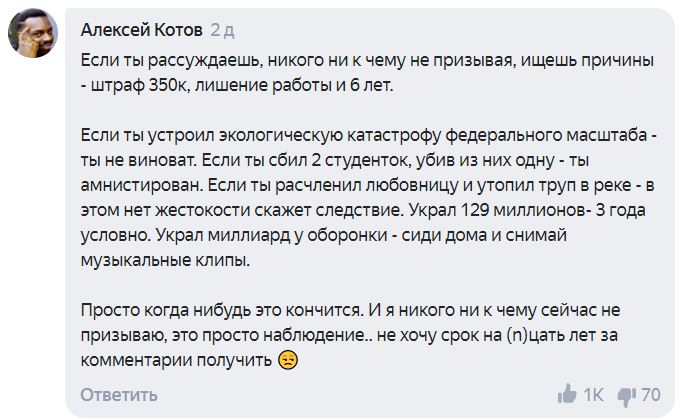 Один из самых популярных комментариев принадлежит пользователю с ником Алексей Котов: