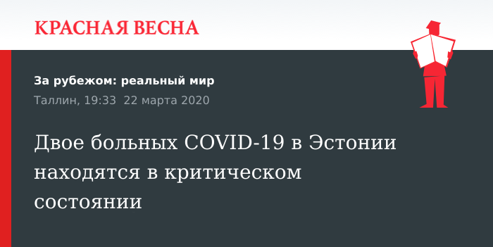 Состояние двоих больных COVID-19 медики оценивают, как критическое, четверо нуждаются в интенсивной терапии, всего в Эстонии госпитализировано 15 человек, 22 марта сообщает республиканский Департамент здравоохранения.