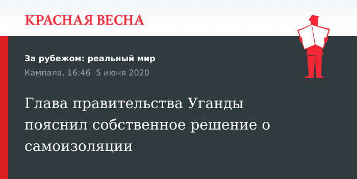 Решение о самоизоляции принял премьер-министр Уганды Рухакана Ругунда после того, как у людей, с которыми он контактировал, обнаружили коронарвирус, 5 июня сообщает Синьхуа.