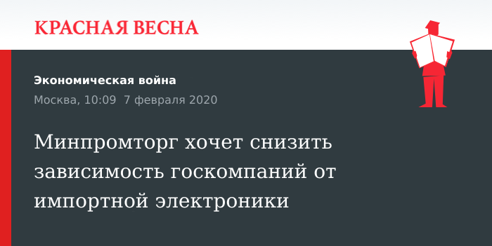 Проект директивы, предусматривающей сокращение закупок радиоэлектроники иностранного производства для предприятий государственного сектора экономики, подготовил Минпромторг, 7 февраля сообщает газета «Ведомости».