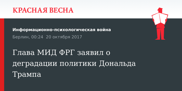 По мнению Габриэля, цель Трампа «разрушить то, что с трудом было создано при его предшественнике Обаме, — сначала реформу здравоохранения, потом международное соглашение по климату и теперь соглашение по атому с Ираном. Внешняя политика тем самым деградирует до выполнения предвыборной пропаганды».
