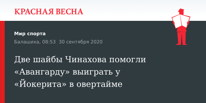 Две шайбы Чинахова помогли «Авангарду» выиграть у «Йокерита» в овертайме