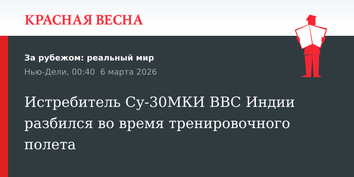 Крушение во время тренировочного полета в штате Ассам потерпел истребитель Су-30МКИ ВВС Индии, сообщил представитель индийских ВВС 5 марта в соцсети X.