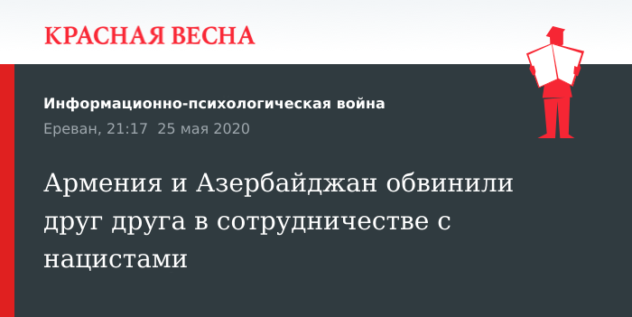 Взаимные обвинения в сотрудничестве с нацистами и другие проявления обострившейся политической риторики между Азербайджаном и Арменией зафиксировали политические обозреватели издания EurasiaNet, 25 мая сообщает портал ИноСМИ.Ru.