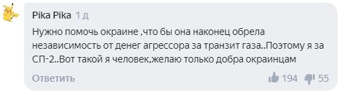 Один из пользователей считает, что надо все-таки помочь Украине избавиться от агрессивного российского газа.