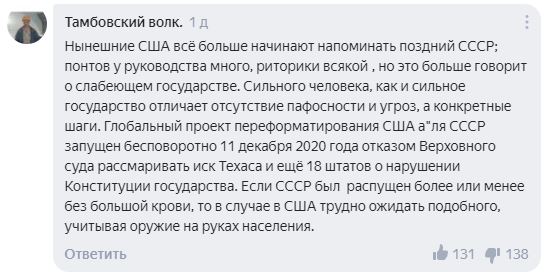 По мнению одного из пользователей, США слабеют и все более напоминают поздний Советский Союз.