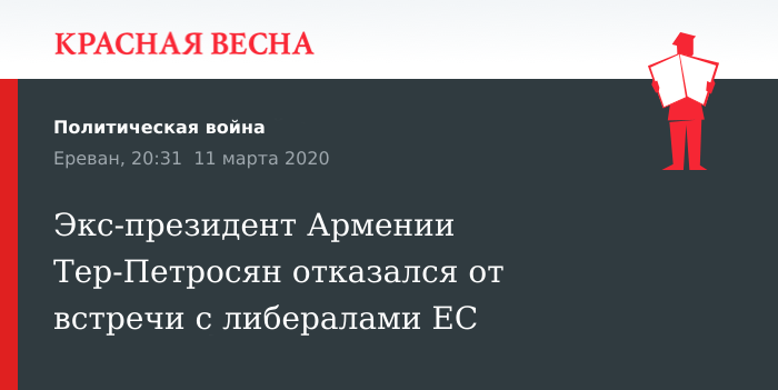 Отказом ответил на предложение принять участие в заседании Альянса либералов и демократов за Европу (АЛДЕ) первый президент Армении Левон Тер-Петросян, 11 марта сообщает Sputnik.