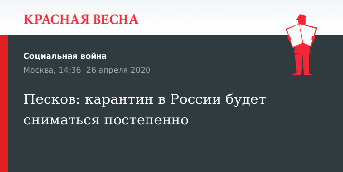 Песков: карантин в России будет сниматься постепенно