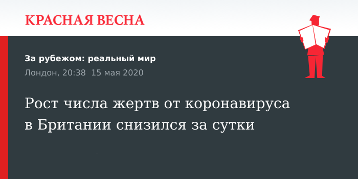 Напомним, 5 мая Великобритания вышла на первое место в Европе по числу смертельных исходов из-за коронавируса, после того, как они стали включать в статистику всех умерших, у кого ранее был диагностирован COVID-19.