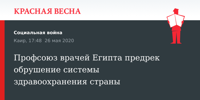 Правительство проявило халатность в ответе на пандемию и несет «всю полноту ответственности» за гибель медиков, заявил профсоюз медработников Египта, 26 мая передает BBC.